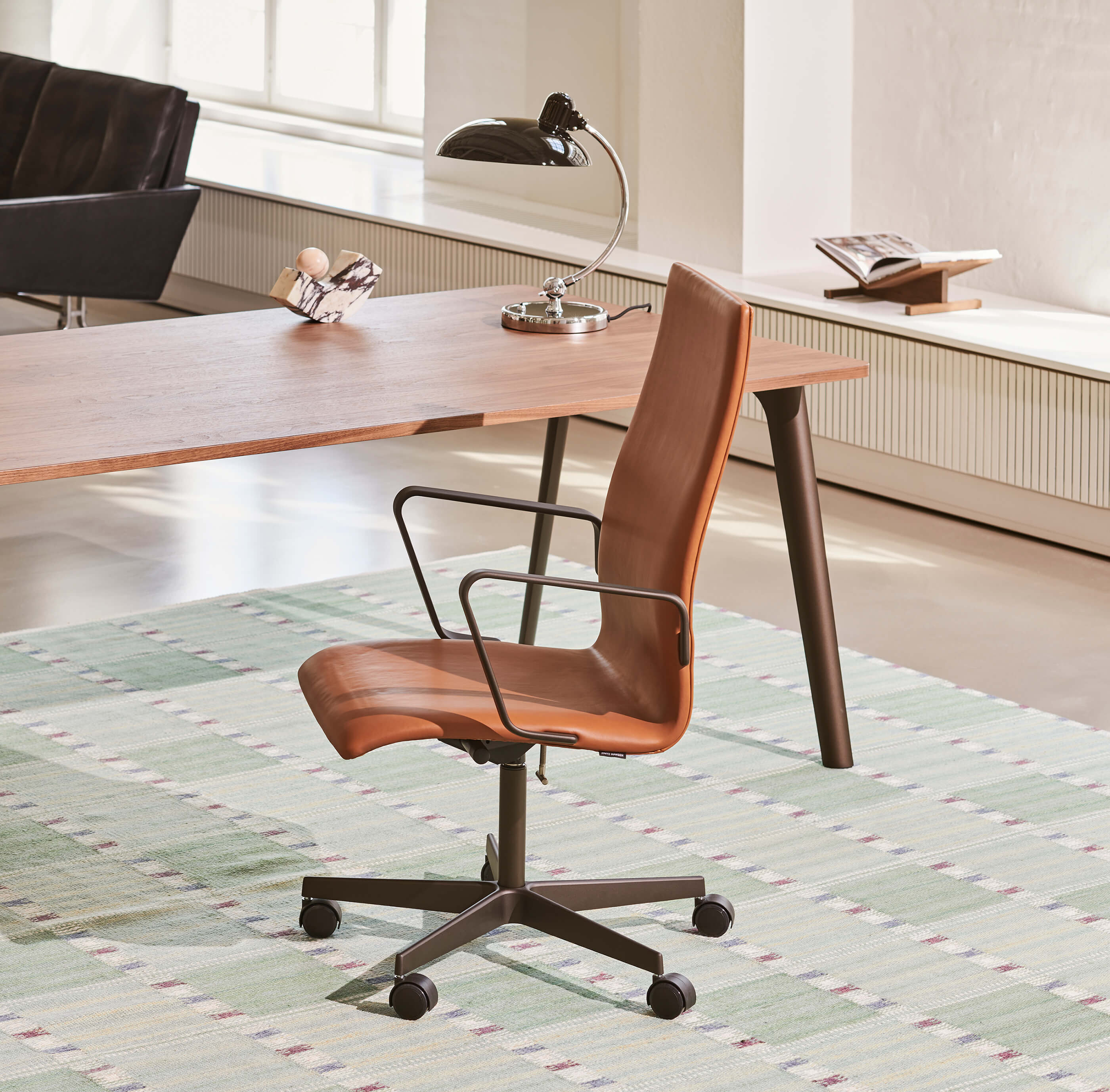 Der Oxford Stuhl wurde von Arne Jacobsen ursprünglich als Stuhl für das Lehrpersonal am St. Catherine’s College in Oxford, England, entworfen, und ist nun in einer neuen, dem klassischen Design getreuen Ausgabe zurück. Der flexible und bequeme Bürostuhl funktioniert gleichermassen im Homeoffice oder Esszimmer wie auch in Besprechungs- oder öffentlichen Räumen.