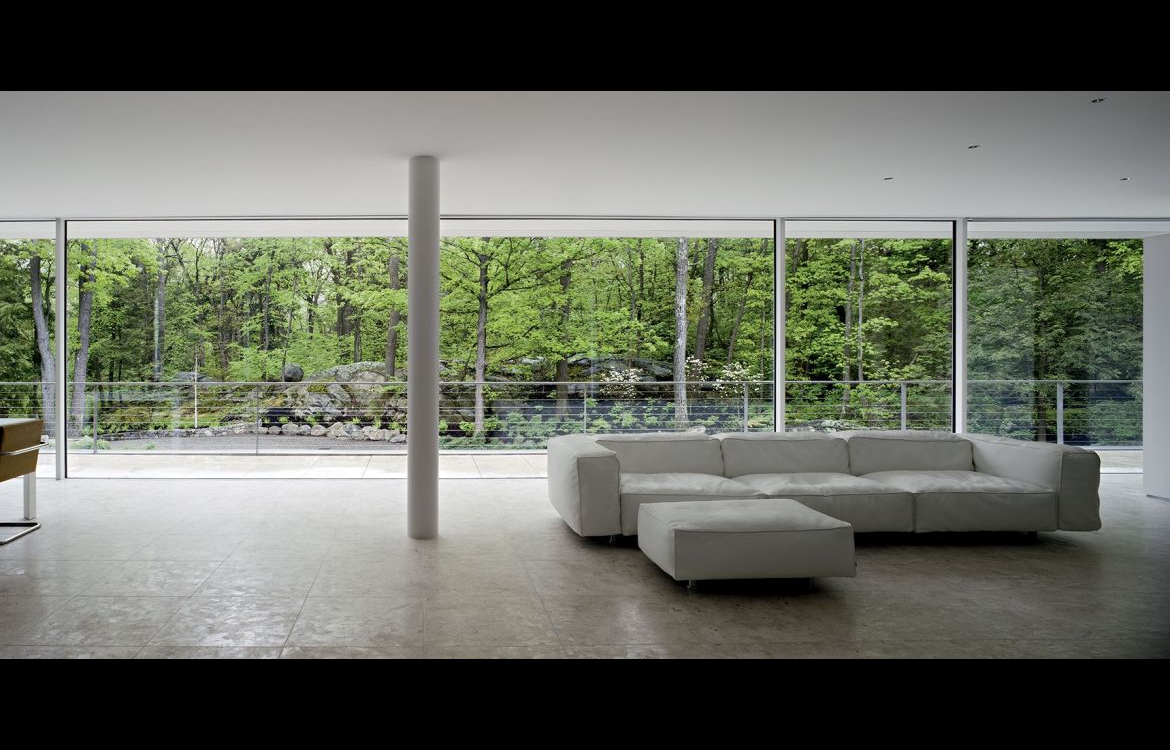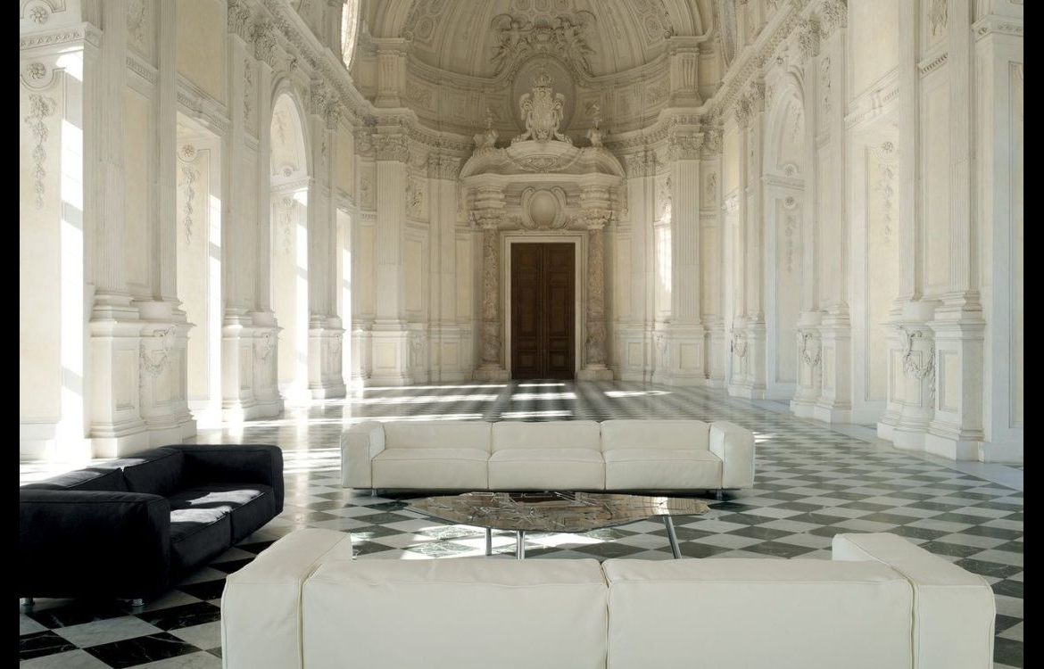 Ein klassisches Sofa aufgrund seiner Form und Masse. Eleganz und perfekte Proportionen, hervorgehoben durch die Einzigartigkeit der Materialien. Durch die auf Schienen montierte Stahlstruktur wird eine grosse Stabilität geboten, und die Weichheit wird durch die Polsterung aus Daunen und *GELLYFOAM garantiert.